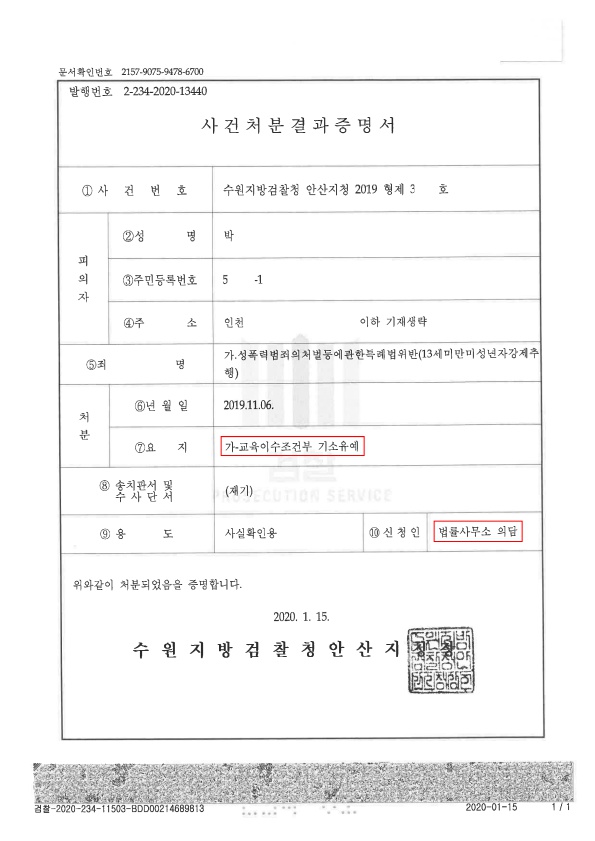 검찰은 의뢰인에게 교육조건부 기소유예 처분을 내렸습니다.