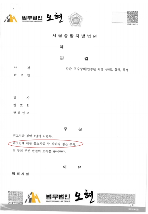 이러한 증거를 바탕으로 본 변호인은 피해자 B씨의 주장과 같이 폭행으로 인해 성관계를 가졌다고 보기 어렵다는 사실을 설득력 있게 주장하였습니다. 그 결과 법원은 위 사건에서의 성관계는 합의에 의한 것이었을 가능성을 배제하기 어렵다고 보아 무죄 판결을 내렸습니다.