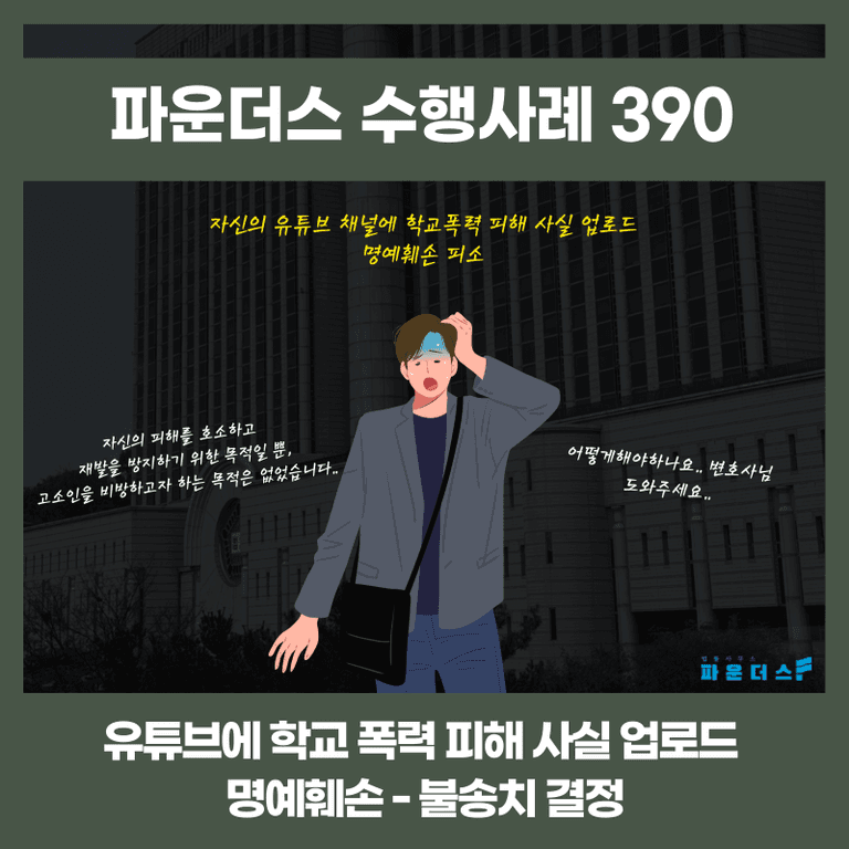 해당 영상에서 학교폭력 가해자로 언급된 고소인은 의뢰인이 자신을 특정하여 허위 사실을 적시하였다며 명예훼손 혐의로 고소장을 제출하였습니다.