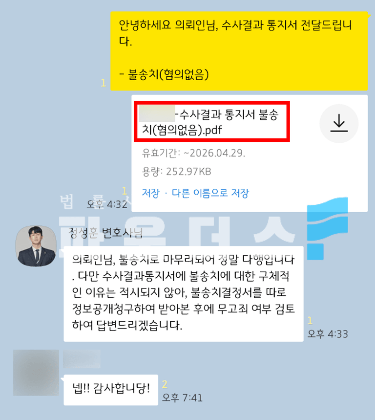 그 결과 의뢰인은 유튜브 영상으로 인한 명예훼손 혐의에 대해 검찰 송치 없이 경찰 단계에서 불송치 결정을 받아 사건을 마무리할 수 있었습니다.