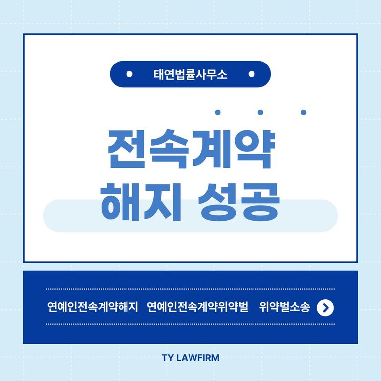 지금 소속사와의 갈등으로 혼자 고민하고 계신다면, 수많은 연예인 소송 성공 사례를 보유한 태연법률사무소와 상담하시기 바랍니다.