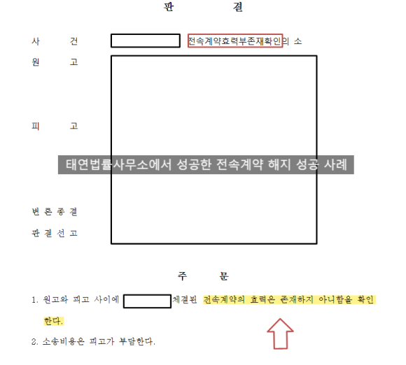 재판부는 태연법률사무소의 주장을 모두 받아들여 의뢰인 측의 전부 승소를 판결했습니다.