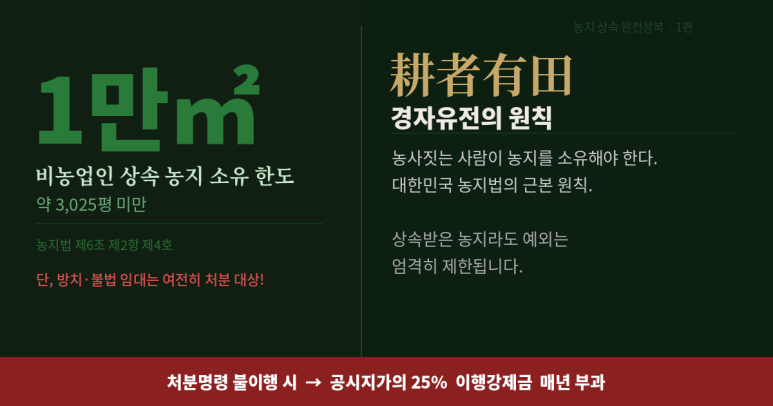 정부의 농지 정책 강화 기조 속에서, 상속 농지를 가진 비농업인이 반드시 알아야 할 법적 리스크를 정리했습니다.