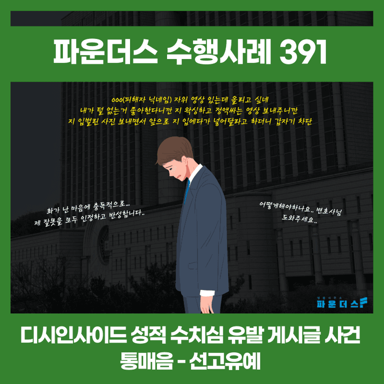 이후 피해자가 의뢰인과의 대화 내용을 디시인사이드에 업로드하자 의뢰인은 이에 대응하는 과정에서 충동적으로 피해자의 닉네임과 성적 내용이 담긴 게시글을 추가로 업로드하였습니다.