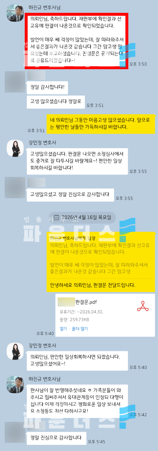 변호인은 그 반성이 재판부에 진정성 있게 전달될 수 있도록 그리고 의뢰인이 이 사건을 계기로 다시 올바른 방향으로 나아갈 수 있도록 끝까지 함께하였습니다.