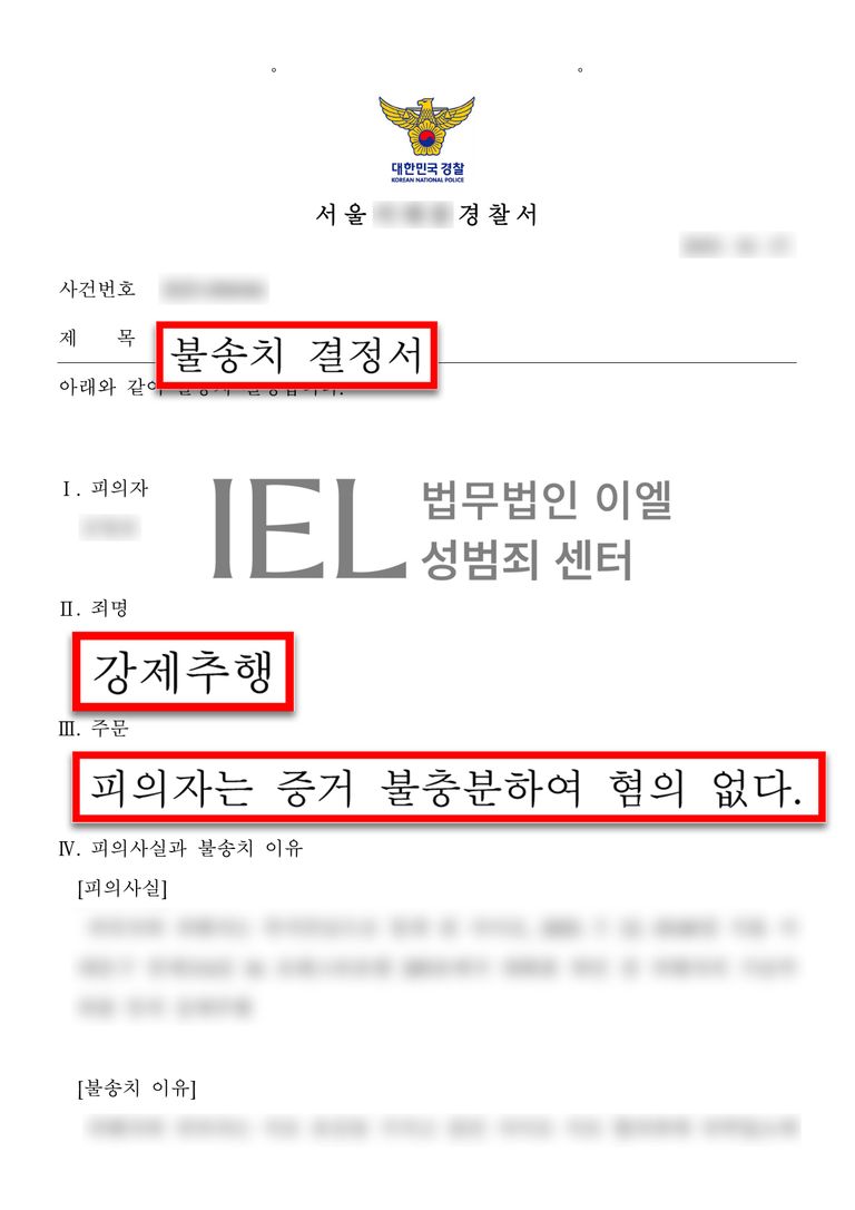 수사기관은 전체 수사 결과를 종합한 끝에, 강제추행 혐의를 인정할 수 있는 증거가 부족하다는 이유로 불송치 결정을 내렸습니다.