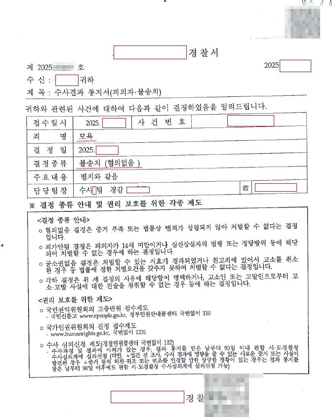 경찰 단계에서 불송치 결정을 받아냈습니다.