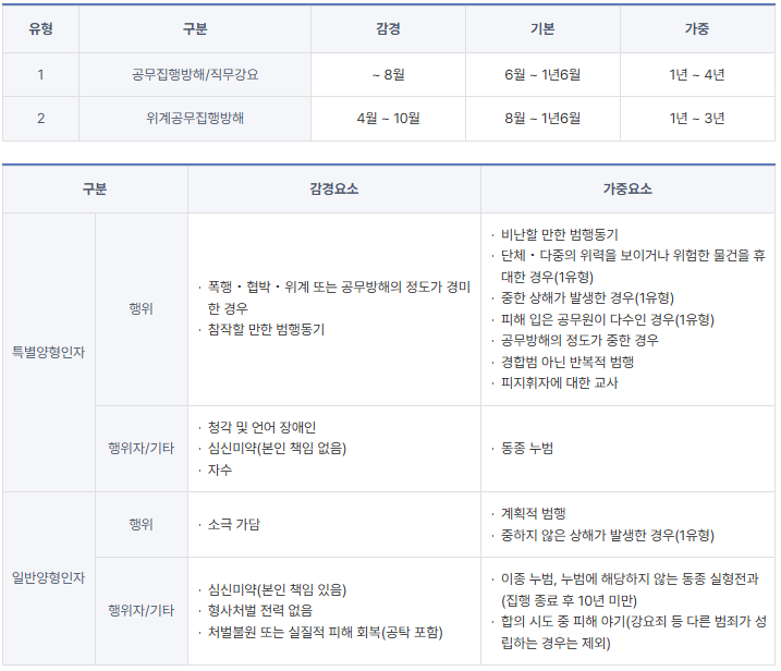 2.위계 공무집행방해 처벌수위·양형기준