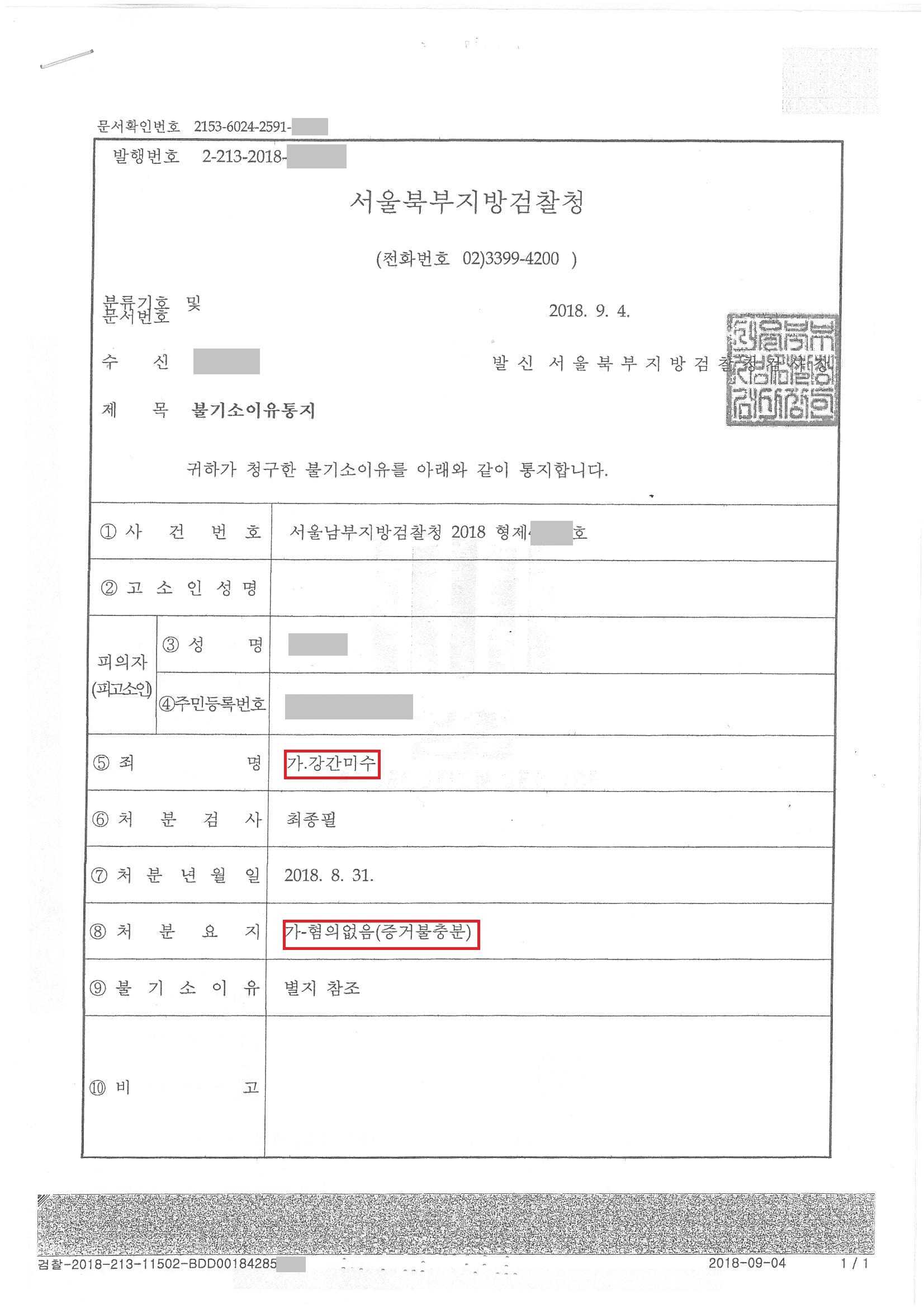 검찰은 증거자료로 제출한 카카오톡 내용과 의뢰인 진술의 구체성 등을 근거로, 피해자 진술의 신빙성에 의심이 간다고 하여, 무혐의 처분을 하였습니다.