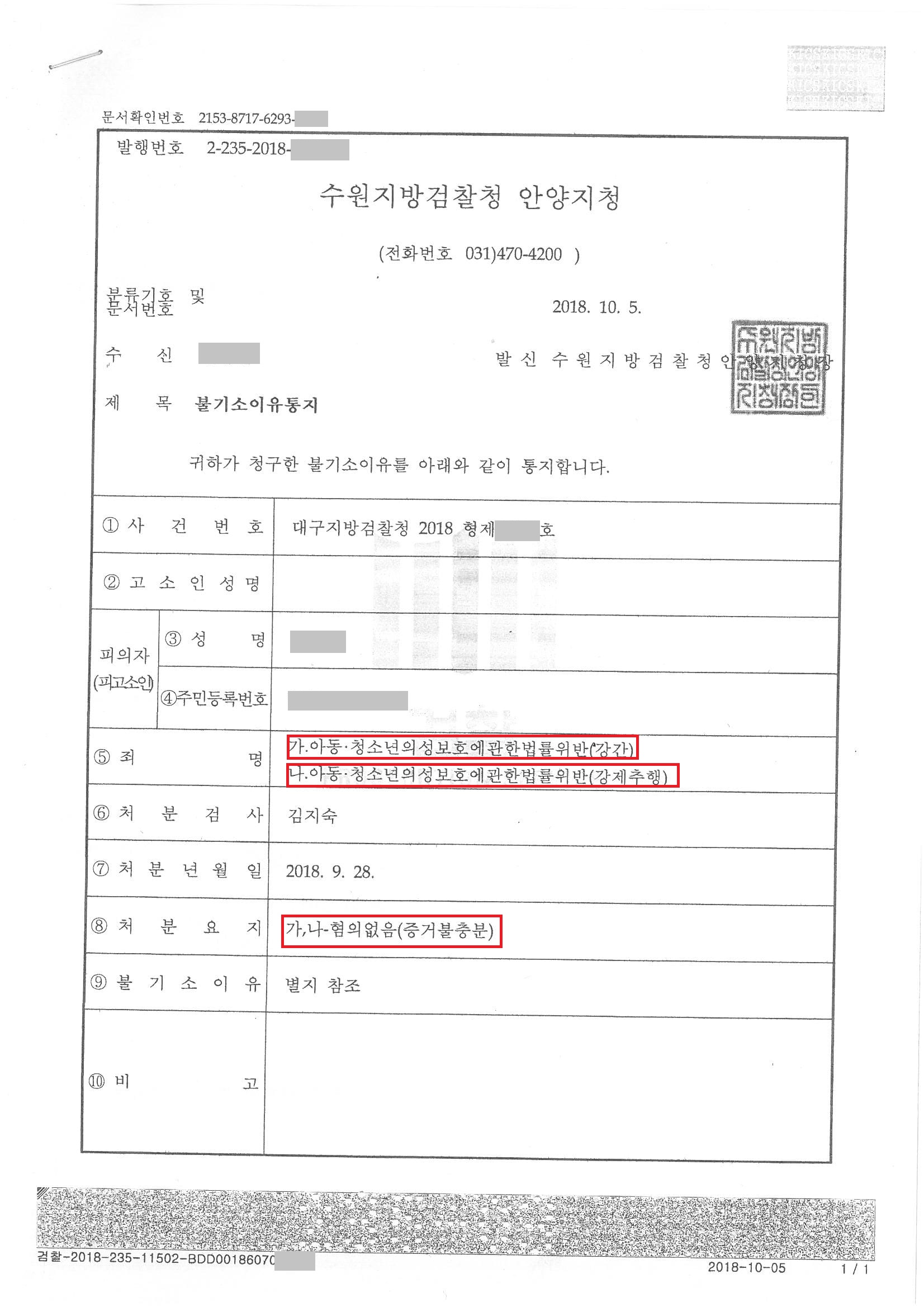 피해자의 진술 외에 피해자의 주장을 입증할 증거가 부존재하고, 반면 피의자의 진술이 좀 더 상식 및 경험칙에 부합한다고 판단하여, 무혐의 처분하였습니다.