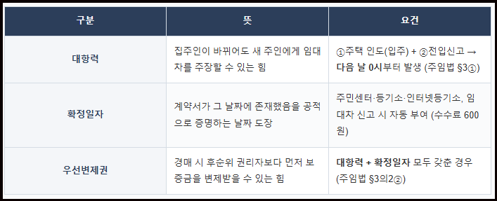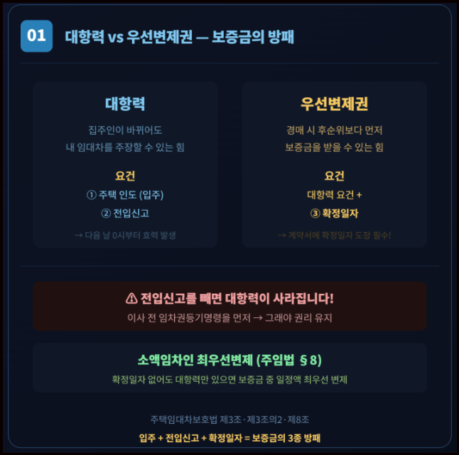 보증금을 지키는 3종 방패 — 대항력·확정일자·우선변제권