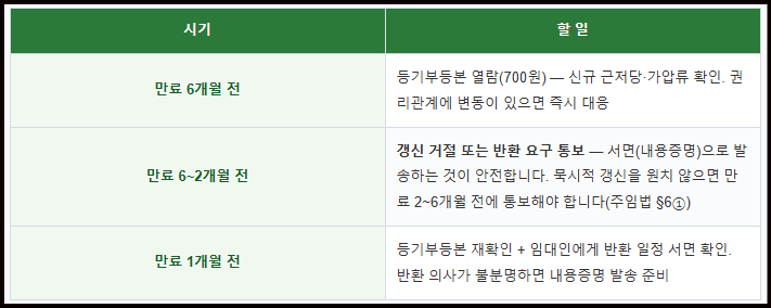 만료 전 점검사항 — 계약 끝나기 6개월 전부터
