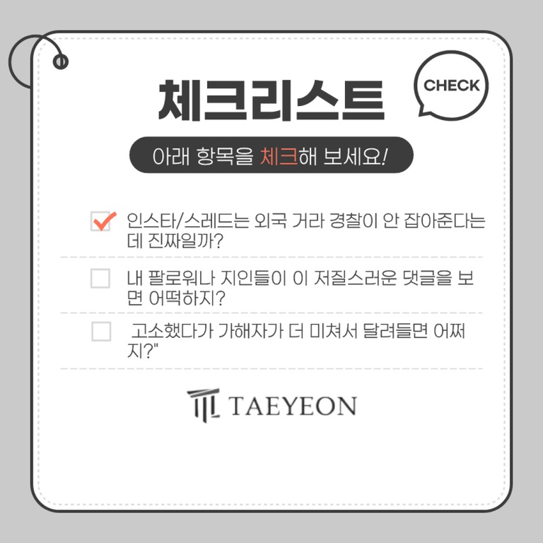 막상 인스타그램이나 스레드는 해외 매체라 고소가 어렵다는 말에 포기부터 생각하고 계신가요?