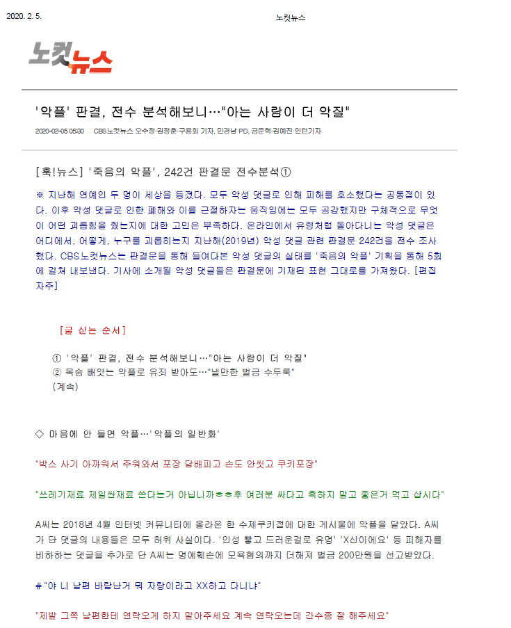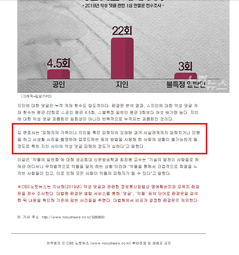 오늘은 명예훼손죄변호사 악플고소변호사 연예인변호사로 관련 CBS뉴스 심층취재 기사에 인터뷰 한 내용이 보도되어 소개해드립니다.