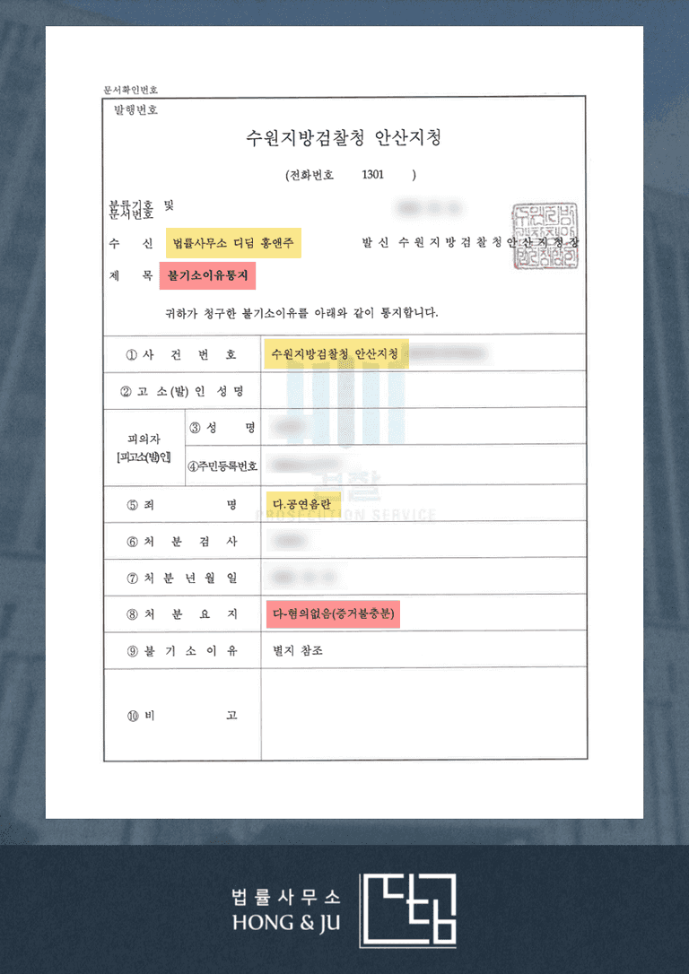 수원지방검찰청 안산지청은 안산성범죄변호사 주장을 모두 받아들여 의뢰인에게 '무혐의' 처분을 내렸습니다. 의뢰인의 행위가 일반인의 정상적인 성적 수치심을 해하는 '음란한 행위'에 이르렀다고 보기 어렵다고 판단한 겁니다.