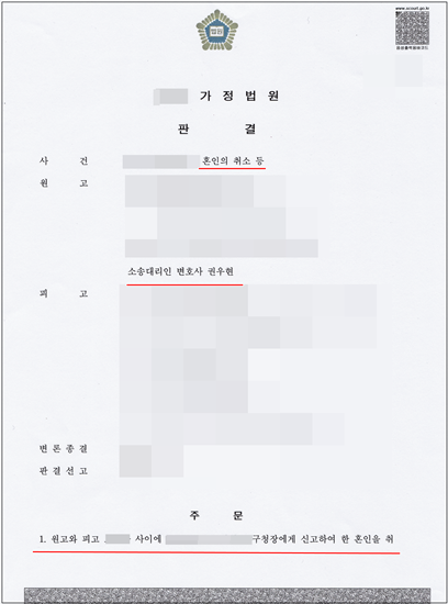 2. 가사적인 측면에서 본다면 사기결혼은 혼인 취소의 대상이 됩니다.