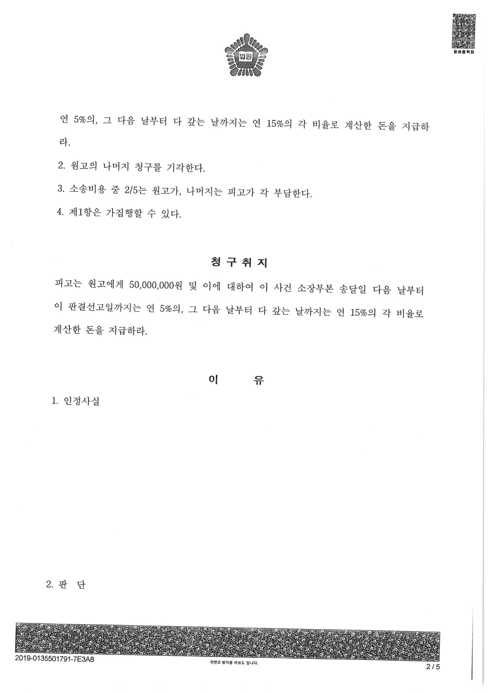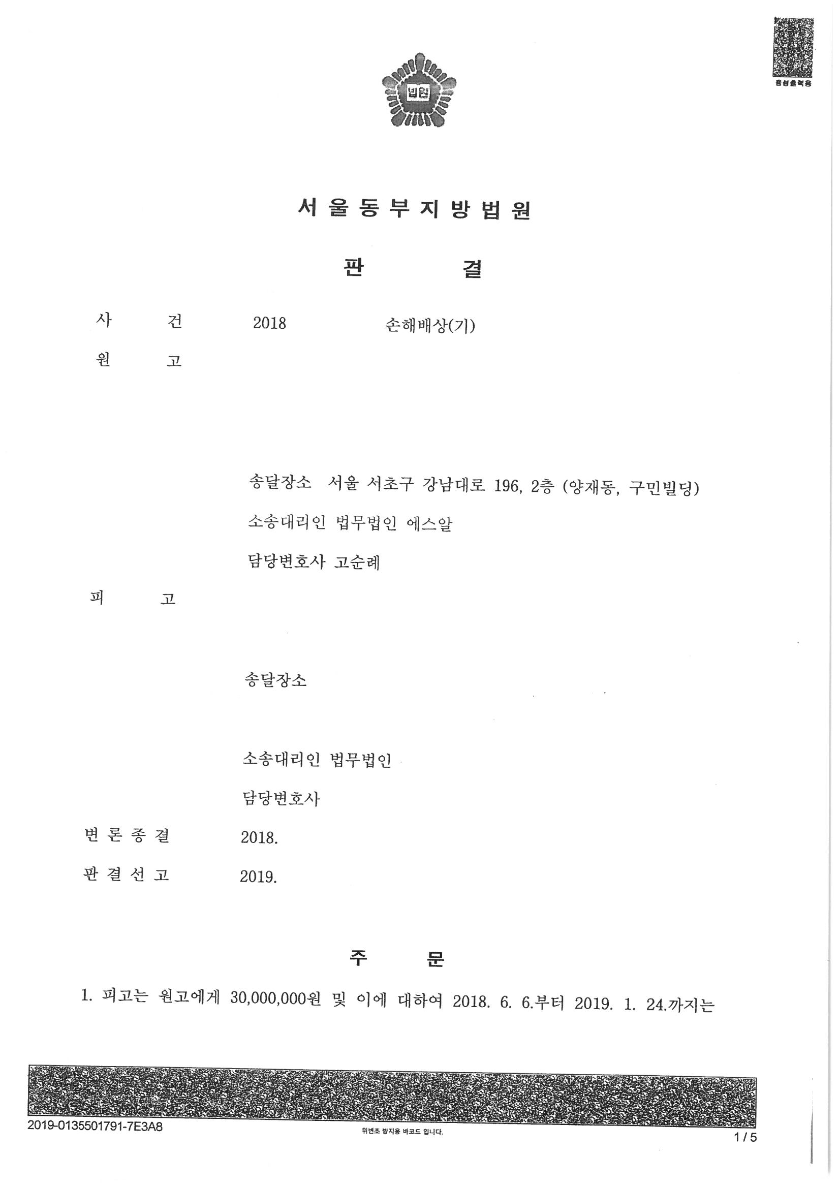 이러한 원고 소송대리인 고순례 변호사의 주장이 모두 법원에서 인용되었고 피고의 주장을 기각시켜 의뢰인에게 좋은 결과로 보답하게 된 승소사례입니다.