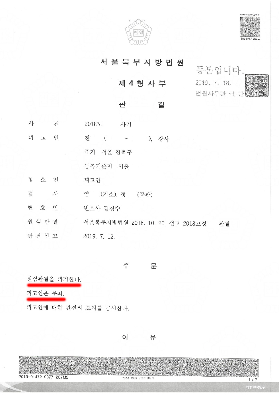 통상 2심 재판부는 1심 재판부의 의사를 존중하기 때문에, 이를 뒤집기 위해서는 1심에서 보다 더 많은 노력을 들여 재판부에 무죄에 대한 명확한 확신을 심어줘야 하죠. 어려운 만큼 1심에서 유죄였던 사건을 2심에서 뒤집을 때의 기분이란.....