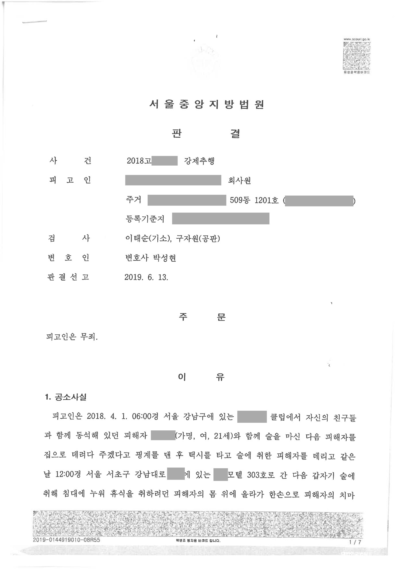 술에 만취한 상태에서 발생한 성범죄에서, 피해자가 일관되게 피해사실을 견지하고 있는 상태에서, 피의자는 공소사실에 부합하지 않는 '결정적인 증거'를 찾지 못한다면 유죄판결을 면하기 어려운데, 이번 사건 또한 그러한 사건 중 하나였습니다.