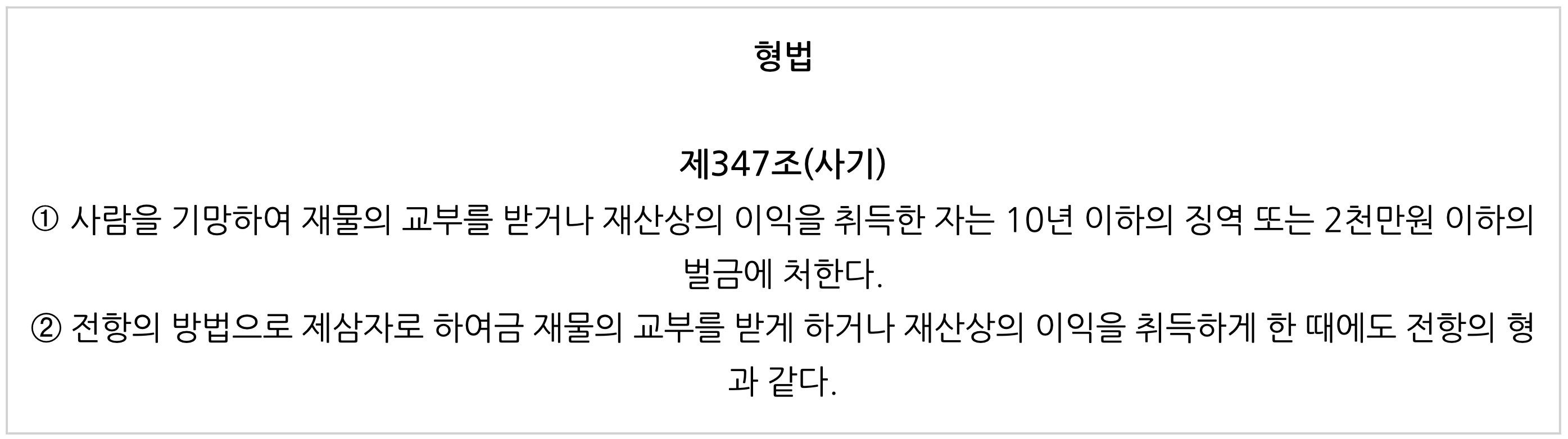 우리 형법은 제347조에 사기죄를 규정하고 있어요.