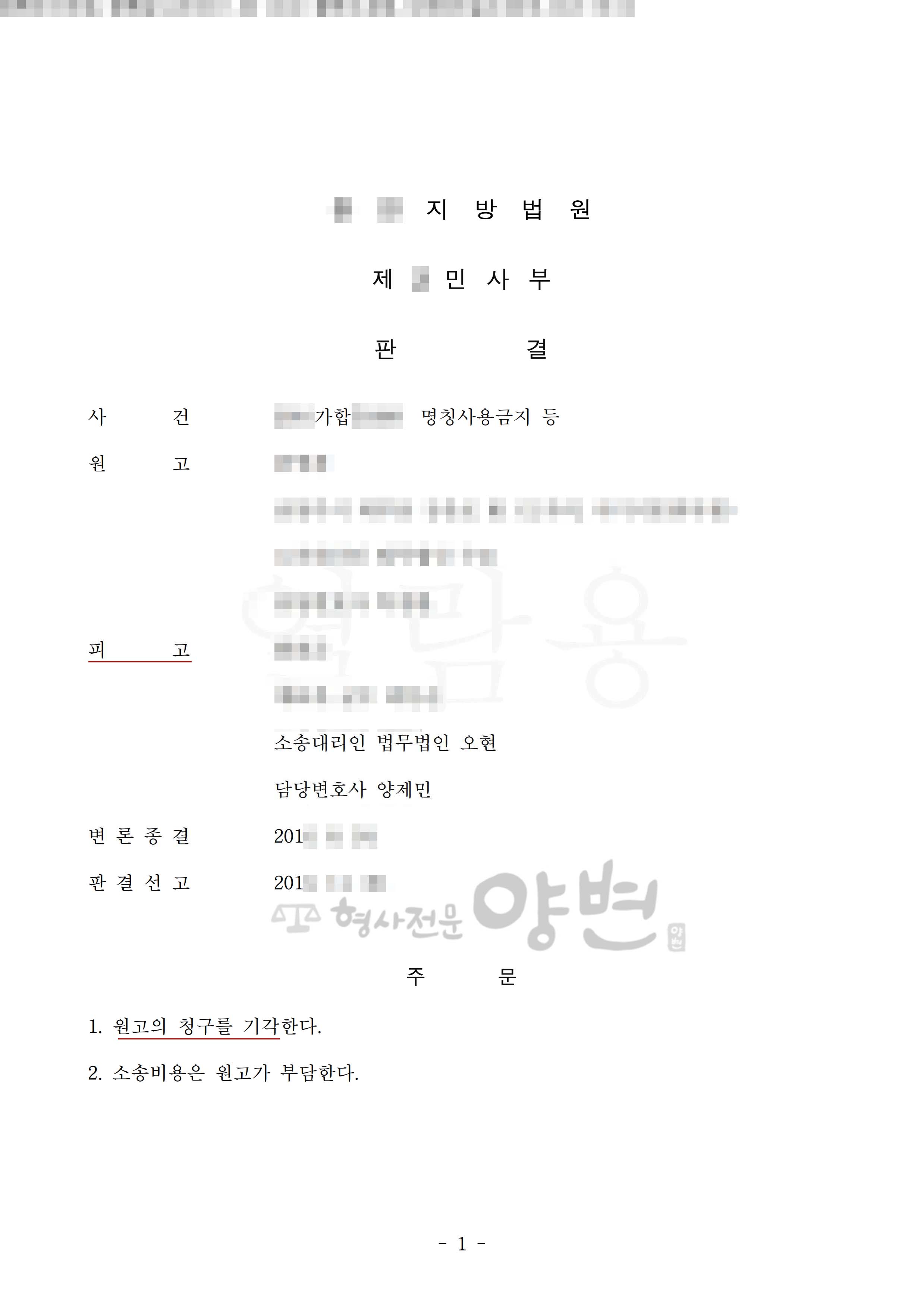 의뢰인(피고)은 『★★문화제』등 행사를 주최하는 지방자치단체인데, 상대방(원고)이 ★★라는 제호가 본인의 저작물이라고 주장하며 의뢰인에 대하여 저작권침해 등 소송을 제기하였고, 이에 본 변호인에게 소송을 위임하였습니다.