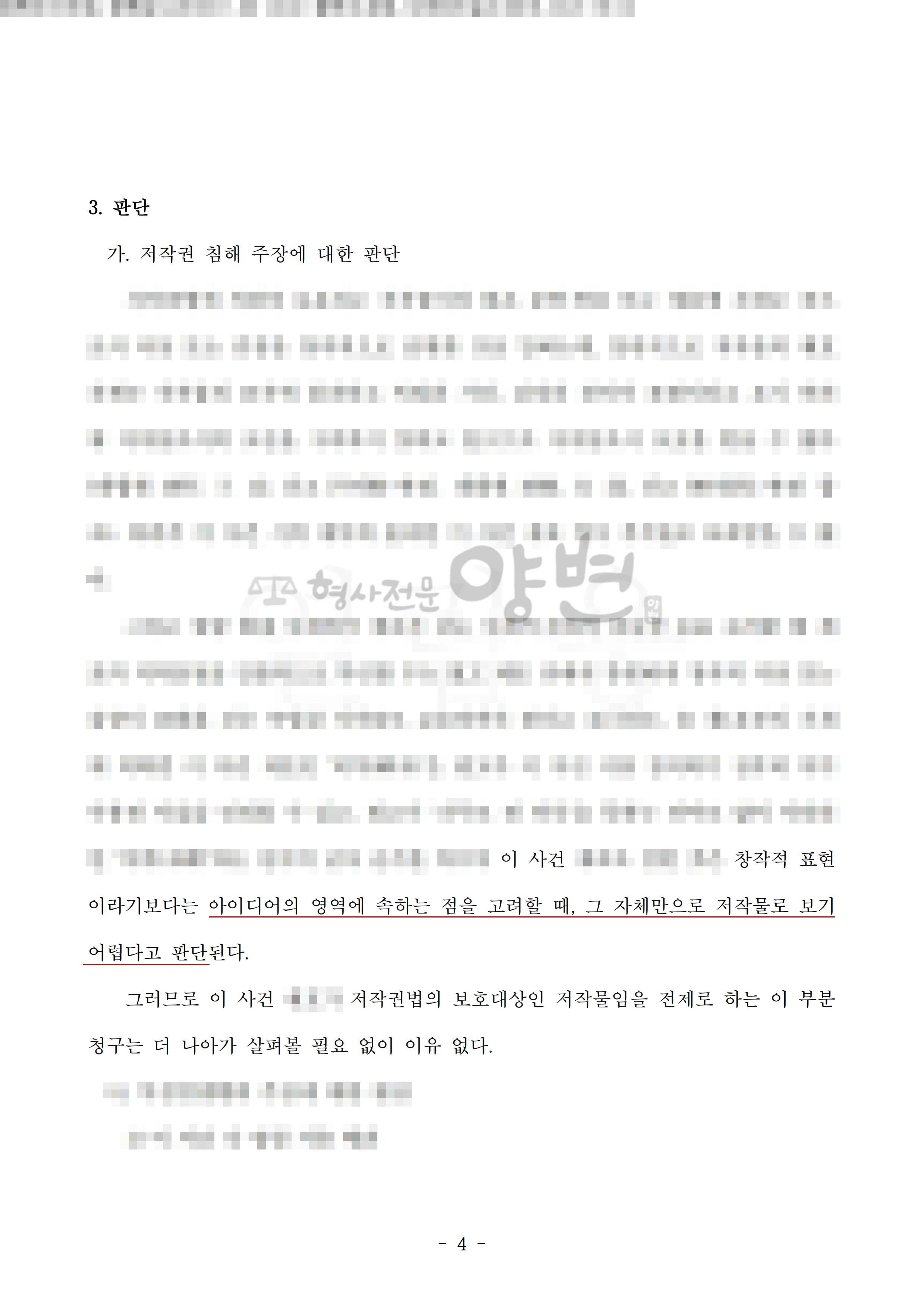 재판부는 "★★를 저작물로 보기 어렵다"며 의뢰인에게 승소 판결하였습니다.
