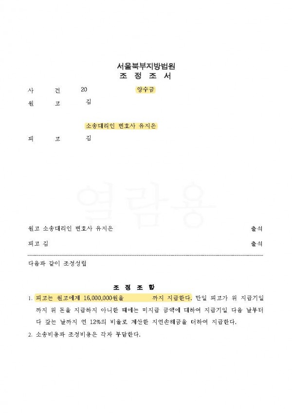 이에 대법원 판례들을 인용하며 내용증명 우편의 효력에 관해 강조하였고, 상대방과 대화한 녹취록, 대법원 나의 사건검색 결과 등을 증거로 상대방 주장의 모순점을 밝히고 상대방이 거짓말을 하고 있음을 강하게 주장하였습니다. 결국 상대방은 변론기일에 남편으로부터 통지 받은 사실을 인정하였고, 이에 조서에 상대방의 진술을 기재해달라고 재판부에 요청하였습니다.
