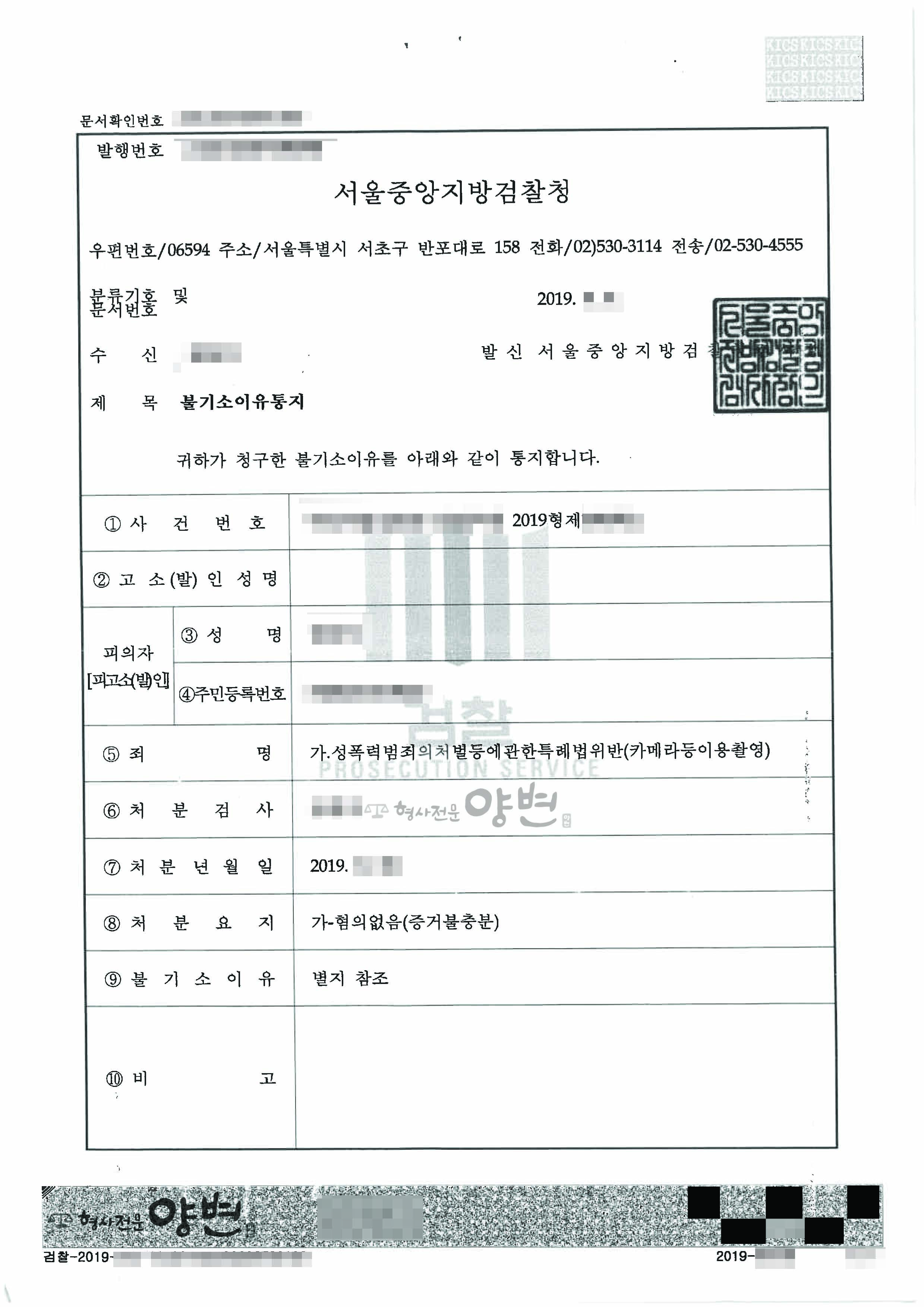 담당검사는 의뢰인이 촬영한 사진들이 “피의자가 성적 욕망 또는 수치심을 유발할 수 있는 신체부위를 촬영하였다고 인정하기 어렵다”며 혐의없음 처분하였습니다.