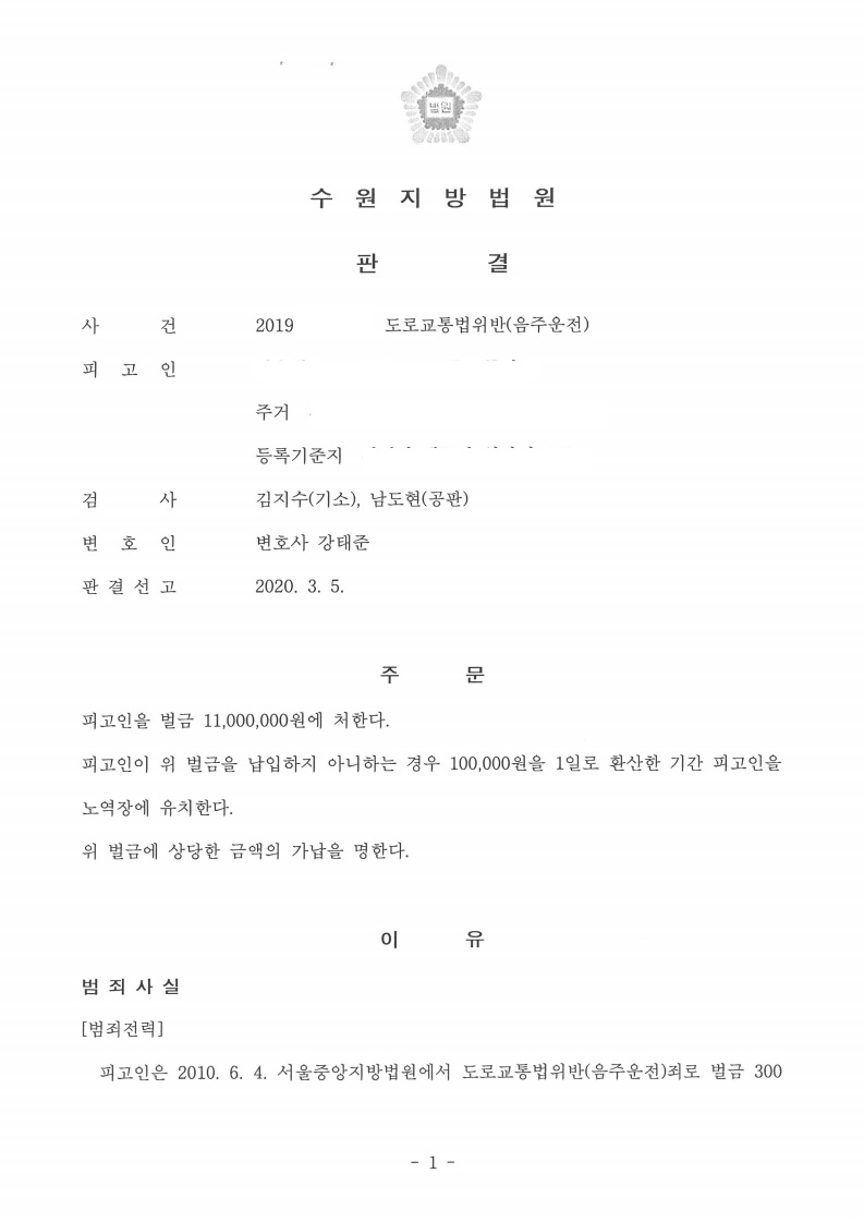게다가 도로교통법 제148조의2에 따르면, "1년 이상 3년 이하의 징역이나 500만원 이상 1천 만원 이하의 벌금"에서 "2년 이상 5년 이하의 징역이나 1천 만원 이상 2천 만원 이하의 벌금"으로 음주운전 처벌규정이 강화되었고, 언론 등을 통하여 위와 같은 사정을 쉽게 접할 수 있는 상황이었습니다.