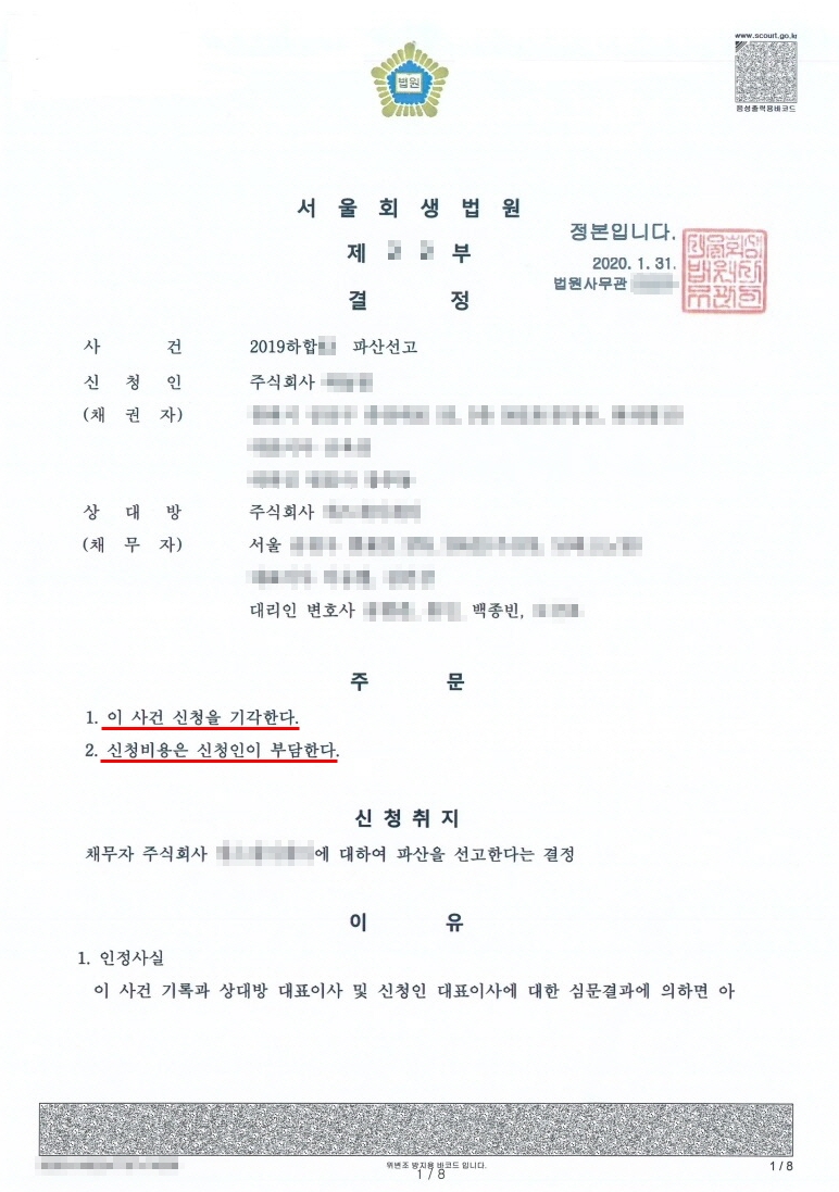 ![[법인파산신청] 코스닥상장회사에 대한 채권자의 파산선고신청 방어](/_next/image?url=https%3A%2F%2Fd2ai3ajp99ywjy.cloudfront.net%2Fuploads%2Ftitleimage%2Foriginal%2F5b1a14703caf680b54b245ea-original.jpg&w=3840&q=75)