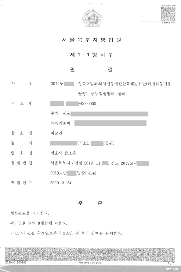 의뢰인은 별일이 아니라고 생각하여 변호인의 도움 없이 혼자서 1심 재판을 받았는데, 1심 판결과 동시에 법정에서 구속된 직후 의뢰인의 가족들이 손조흔 변호사에게 2심의 변호를 의뢰하였던 사건입니다.