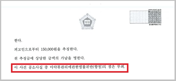 마약류관리에관한법률위반(향정)의 점은 무죄