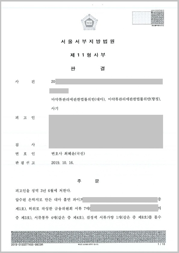 피고인은 마약 범죄로 인한 처벌전력이 수회 있고 실형으로 처벌받은 적도 여러 번 있는 사람이었습니다.