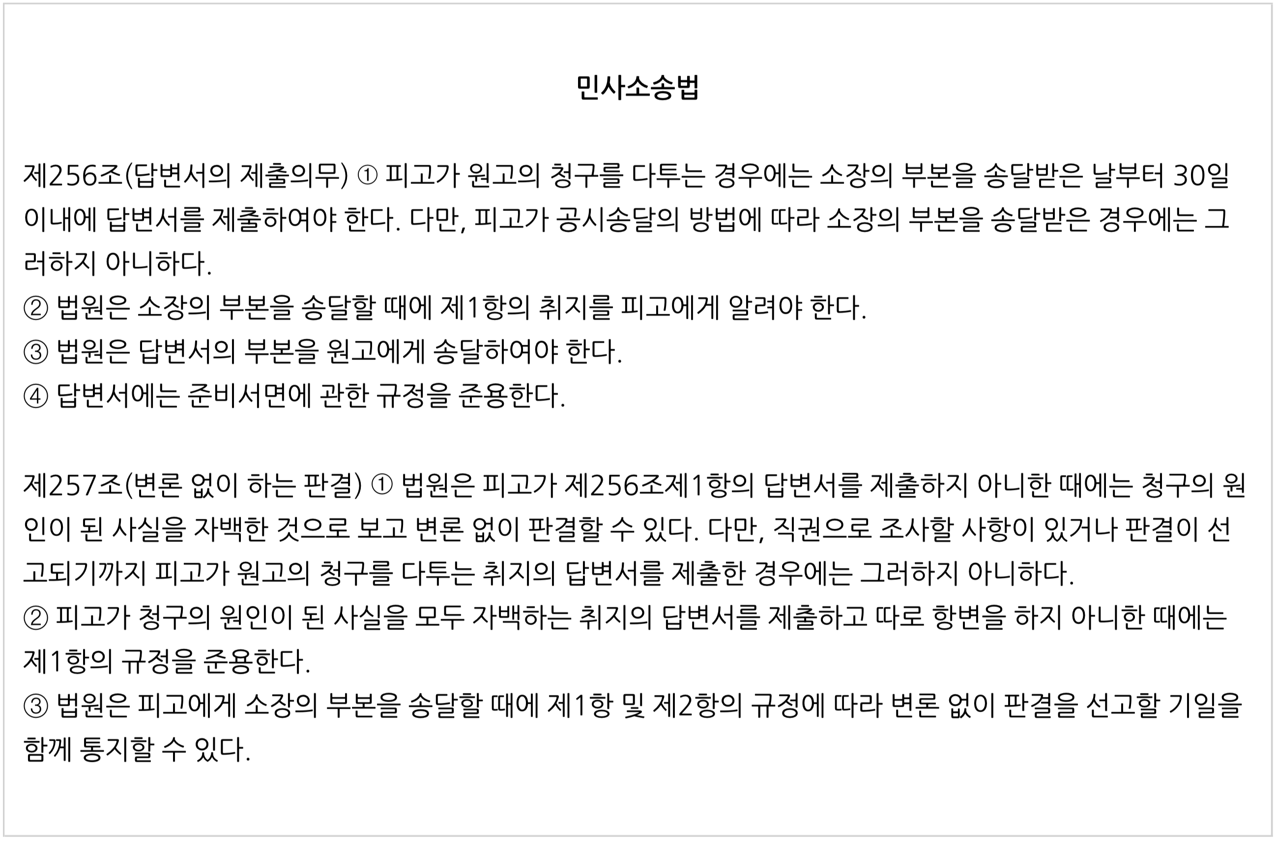 그러자 법원은 '무변론판결선고기일'을 잡아 버렸어요. 이 말인즉슨, 변론기일을 별도로 잡지 않고 바로 선고를 하겠다는 거죠!! 우리에게 좋은 걸까요???? 민사소송법 제257조에 '변론 없이 하는 판결'이라는 규정이 있어요.
