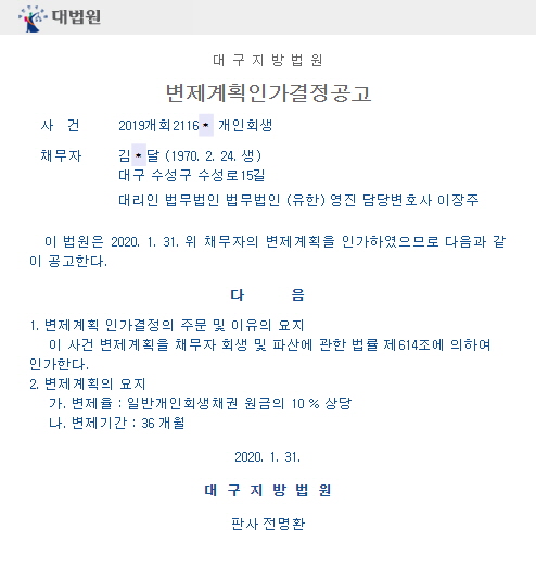 변제계획인가결정