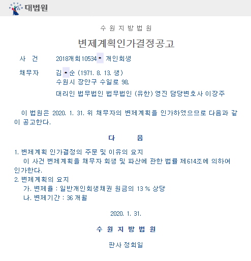 변제계획인가결정
