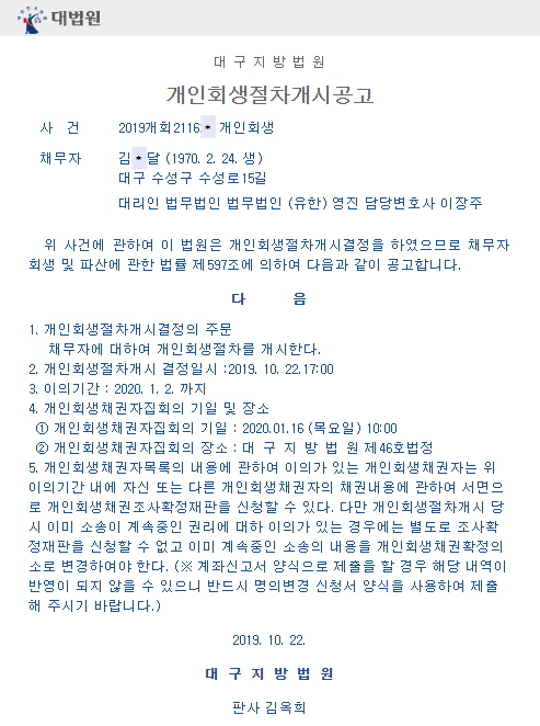 개인회생절차개시결정