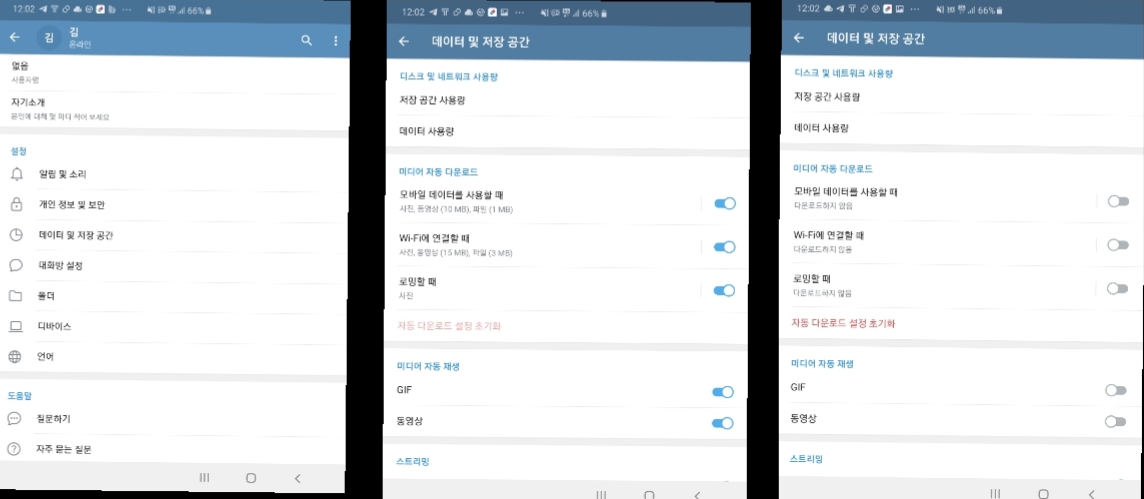 텔레그램 자동저장기능은 텔레그램의 설정에 들어가서 변경할 수 있습니다. [설정→데이터 및 저장공간→미디어 자동 다운로드, 미디어 자동 재생]으로 들어가서 변경할 수 있습니다. 텔레그램 측에서 정보를 제공하지 아니하는 이상 언제부터 설정이 변경되었는지는 알 수가 없습니다(다만 핸드폰이 교체되지 아니한 경우 핸드폰에 저장된 내용이 남아 있을 수는 있음). 텔레그램 자동저장기능이 OFF로 되어 있다면 단순 스트리밍을 주장할 수 있고 아동청소년의성보호에관한법률(아청법) 아청물 소지죄로 처벌되는 것을 막을 수 있을 것입니다(다른 어플들의 경우에도 자동저장기능을 OFF로 해두는 것이 자연스러움).