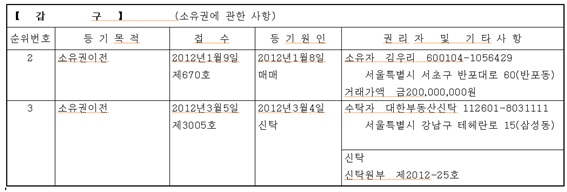 2. 신탁등기된 부동산 등기부등본
