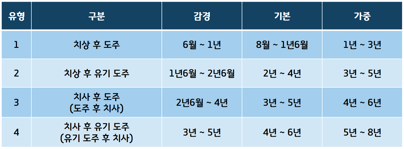 앞서 말씀드린 바와 같이 음주 교통사범에 대한 구형 및 구속기준 강화로 인해, 높아진 처벌을 피하기 위한 뺑소니 사범의 증가하는 경향이 있습니다. 이는 차라리 일단 도주하고 술이 깬 다음 수사기관에 출석하여 조사를 받는 게 낫다는 ‘도주의 이득’이 문제가 되고 있기 때문에 음주 도주 사건에 대한 구형 및 구속기준이 대폭 강화되었습니다. 도주 사망사고, 4주 이상 피해 발생 도주 사고, 상습범의 경우에는 원칙적으로 구속수사를 하고 있는 상황입니다.