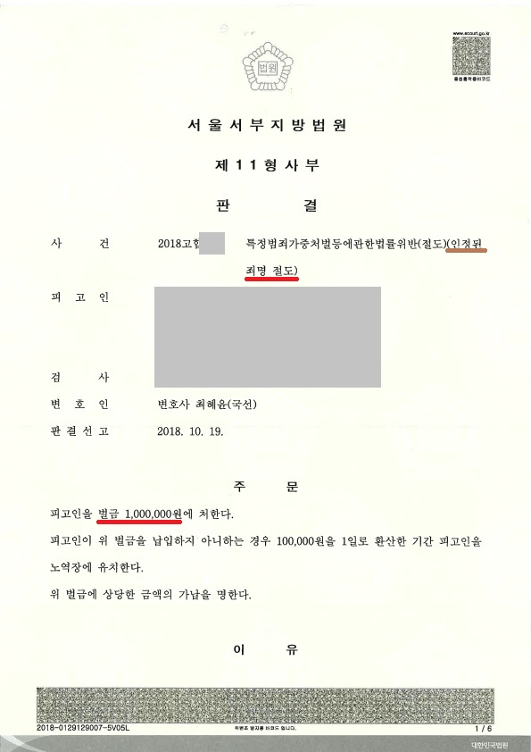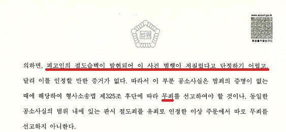 인정된 죄명 : 절도