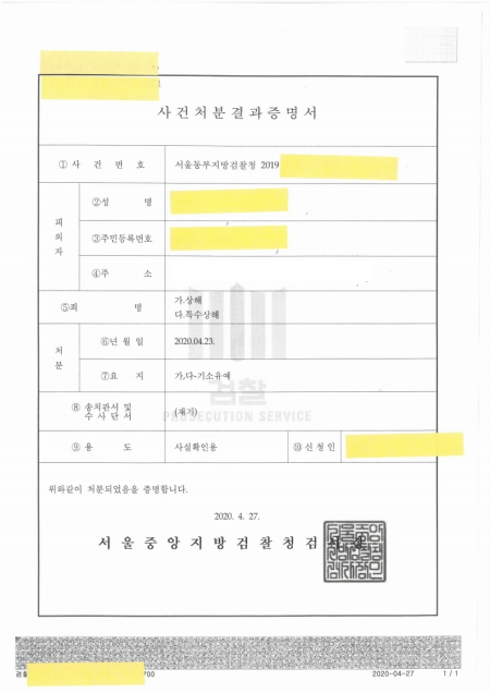기소유예 처분을 받았습니다.
