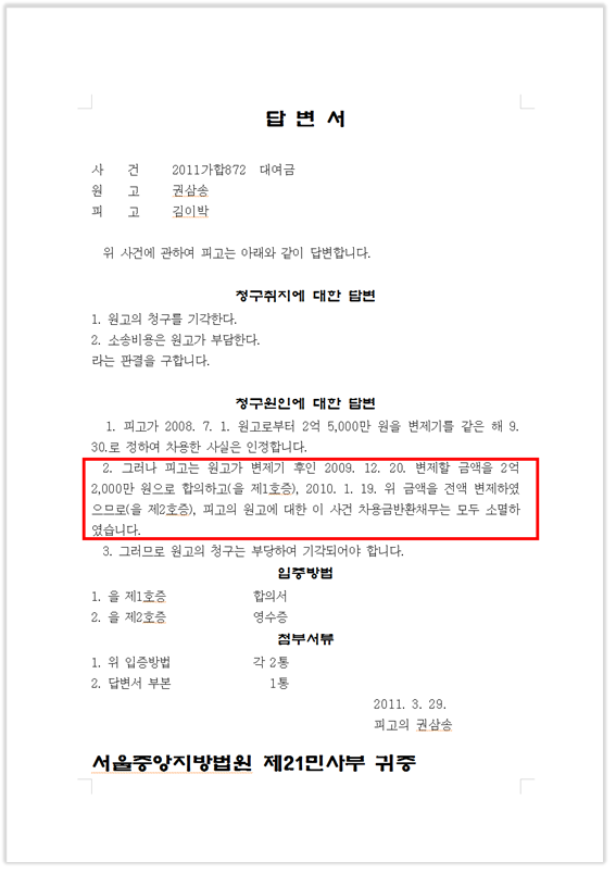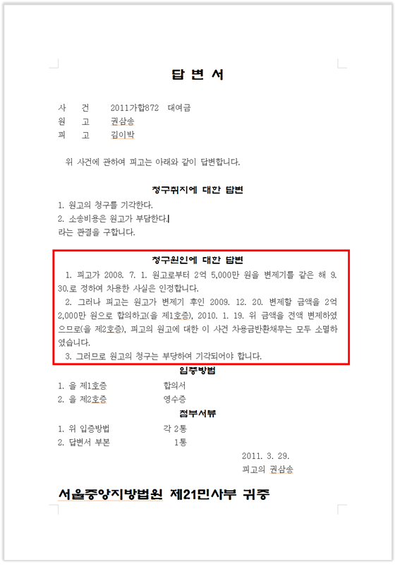 1. 청구원인에 대한 답변이란