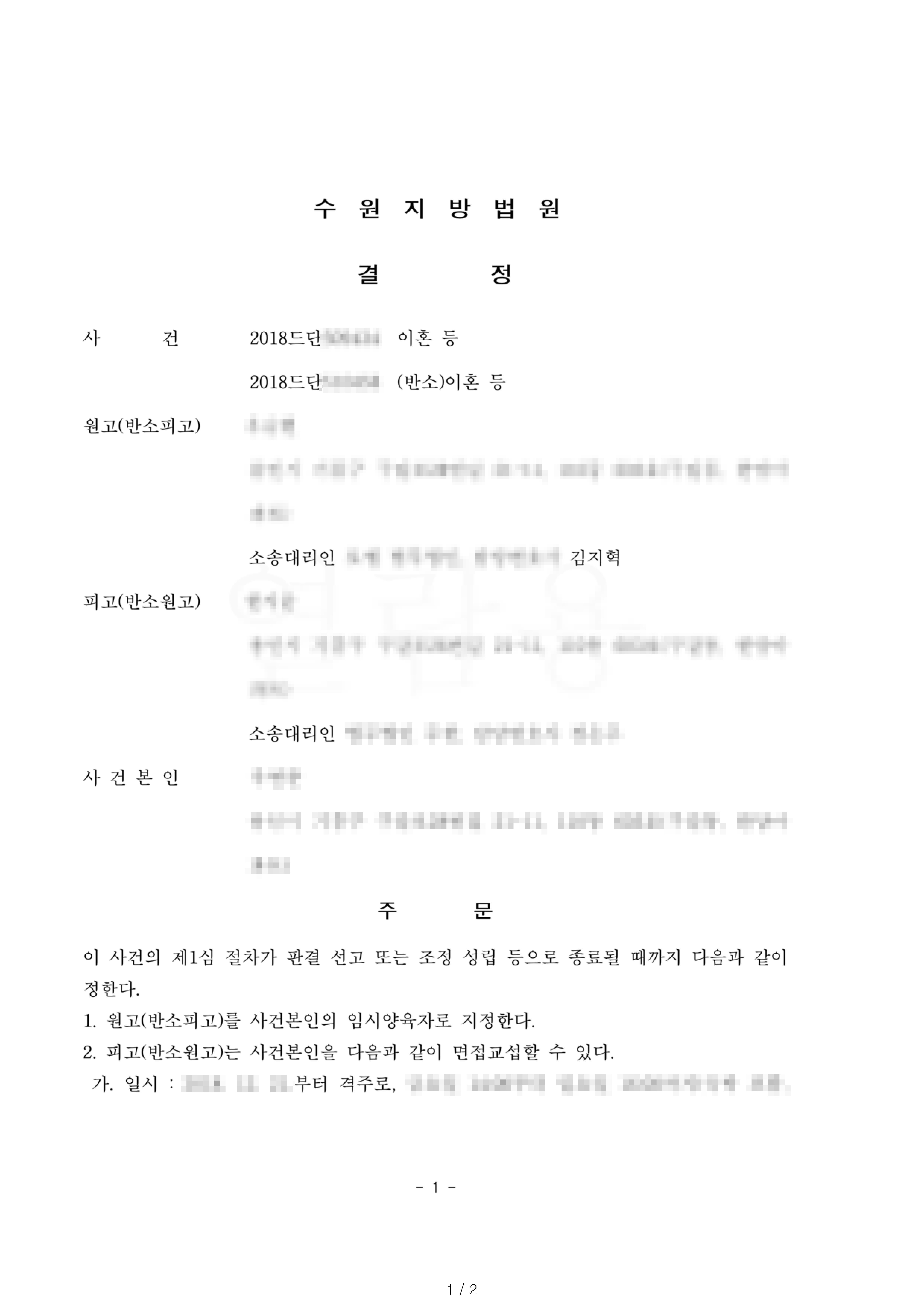 미성년자 자녀가 있는 상황에서 이혼 소송이 진행되는 경우 어느 일방이 자녀의 친권 및 양육권자로 지정되는지도 대단히 중요한 부분입니다. 이번에는 남성인 의뢰인이 먼저 이혼청구를 하면서 사전처분을 동시에 신청하여 자녀들의 임시양육권자로 지정된 사례가 있어 소개드립니다.