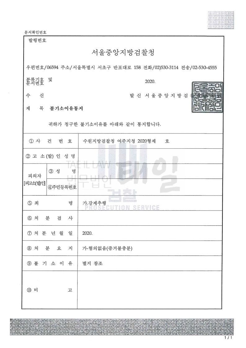 변호인은 카카오톡 대화내용 등을 증거로 제출하여 고소인이 주장하는 사실관계가 실제와 다르다는 점을 주장하였고, 아울러 어깨를 두드리거나 등을 두드린 행위가 강제추행으로 평가될 수 없다는 사실을 주장하여 무혐의 처분을 받을 수 있었습니다.