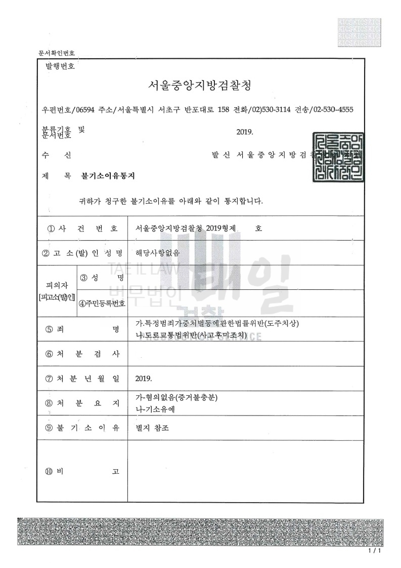 변호인은 피해자가 제출한 진단서가 전치2주이고 블랙박스 영상에 비추어 볼 때, 피해자의 상해 자체를 다툴 여지가 있다고 판단하였습니다. 이에 변호인은 객관적인 증거를 통해서 피해자가 상해를 입지 아니하였음을 밝혀냈고, 이에 뺑소니(도주치상) 혐의에 대해서 무혐의 처분을 받아 피의자는 면허를 회복할 수 있었습니다. 아울러 사고후미조치 부분에 대해서도 기소유예 처분을 받아 피의자는 아무런 벌금도 내지 않고 원만히 사건을 종결할 수 있었습니다.