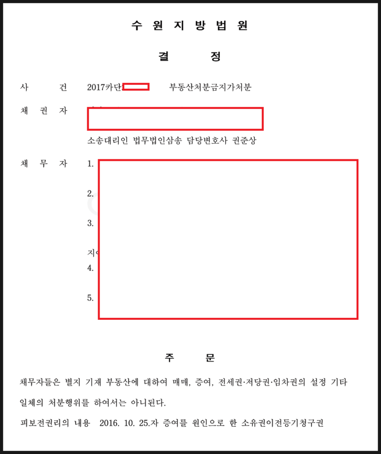 가. 부동산처분금지가처분 신청 및 법원의 인용결정