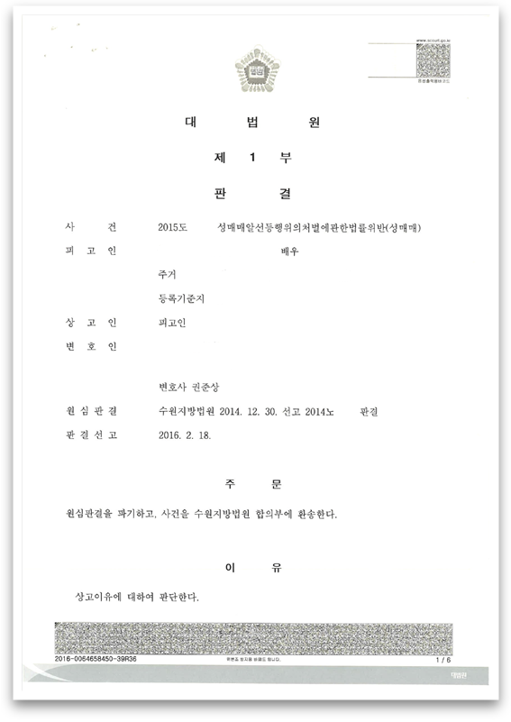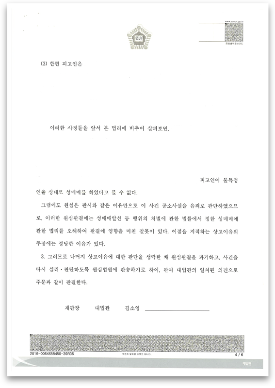 대법원은 본 변호인의 상고이유 주장이 정당하다고 판시하면서 사건에 대하여 무죄 판단을 하였고, 유죄를 선고한 원심판결을 파기하였습니다.