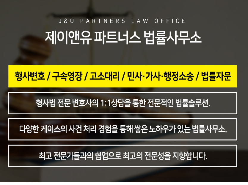 J&U 파트너스 법률사무소 엄진 형사전문변호사는 해당 사건해결의 경험이 많으며 수 년간의 사건 데이터를 바탕으로 합리적인 결과를 이끌어 내고 있습니다.