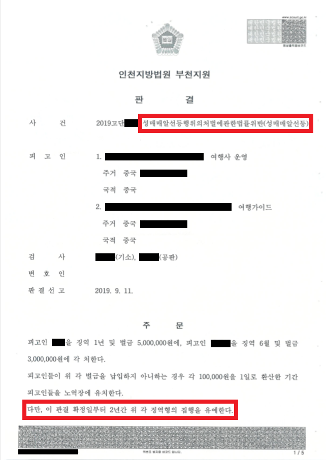 중국인 A, B씨는 여행사의 사장과 가이드였습니다. 부양할 가족이 있는 A, B씨는 여행사를 찾는 손님이 줄어들어 경제적으로 힘들어지게 되자 원정 성매매를 알선하기로 하고, 인터넷 카페를 개설하여 광고하며 손집들을 모집하였습니다.